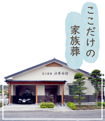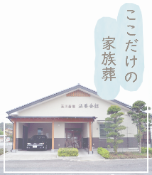 玉川斎場 本館 故人を敬い、故人を偲ぶ、ご葬儀はその方の人生を締めくくる大切なセレモニー。ご遺族様やご友人、お世話になった方々との大切なお別れのひとときをお過ごしください。 玉川斎場 別館 ご遺族を中心に親族、故人様と親しかった人々が集い、自宅気分で心を込めて静かにお別れのできる貸切の邸宅型家族葬斎場です。 12名様程度の宿泊が可能。ホテル等に分散せず皆様で集い、故人様をお偲びいただけます。 玉川斎場 法要会館 少人数の家族葬専用斎場で、1日1家族様限定。他のお客様を気にすることなくゆっくりご利用頂けます。